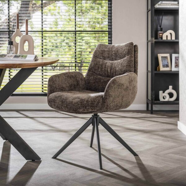Pour aménager un espace repas confortable et harmonieux, optez pour cette table en acacia brun + 8 fauteuils en tissu texturé taupe. Avec ses bords arrondis, la table rectangulaire est montée sur un piétement central, dont les lignes organiques assurent stabilité et robustesse. Conçue en bois d’acacia, elle révèle une finition brune, permettant à l’ensemble de s’associer à des éléments en ton boisé, neutre ou foncé. Les huit fauteuils pivotants combinent une base en acier peint à une assise en tissu texturé et rembourrée de ressorts ensachés pour un meilleur confort. Chaque chaise dispose d’un dossier matelassé, prolongé par des accoudoirs bien intégrés.